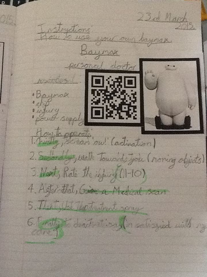 Using stimuli from How to train you dragon and Big Hero 6 Year 4 are learning how to write a set of instructions.